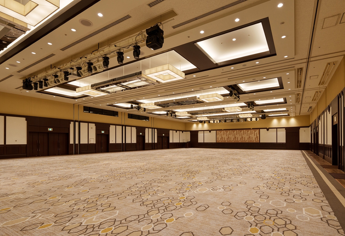 大宴会場「飛翔」大人数はもちろん、少人数でも気兼ねなく楽しめるスタイルを用意しています。