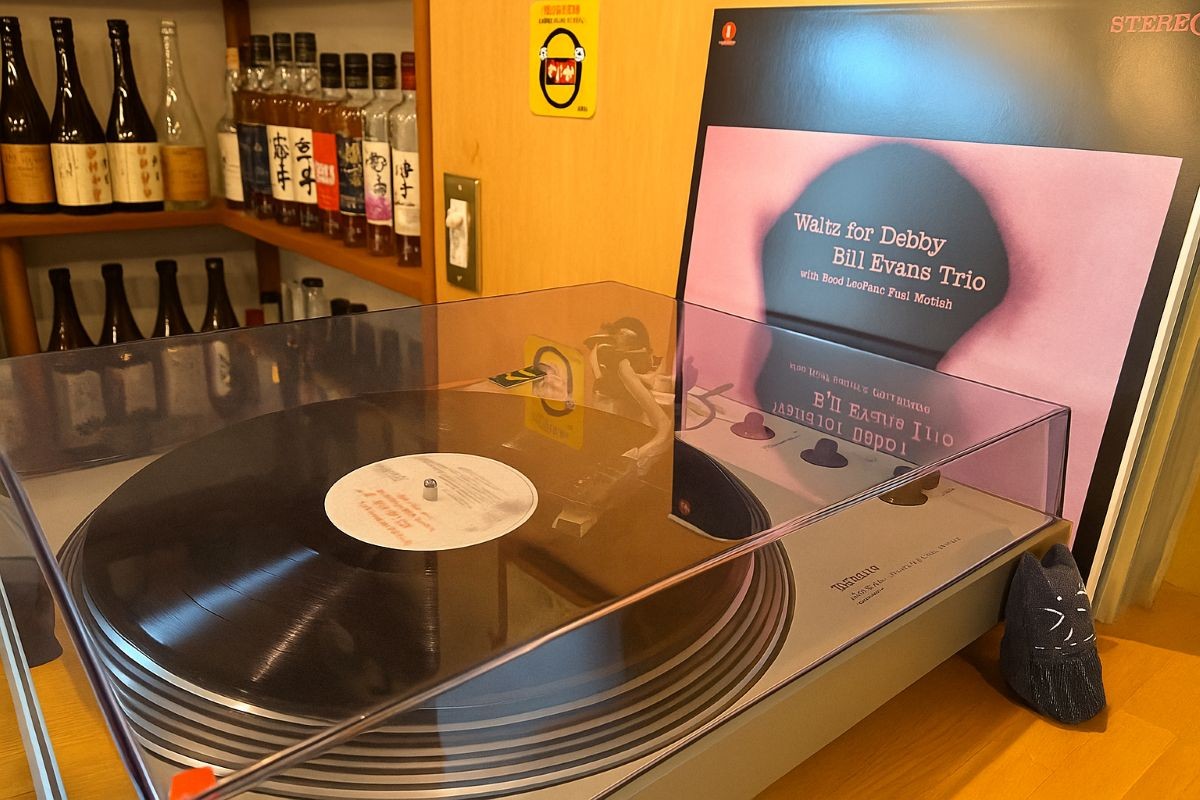そして、カウンターにはターンテーブルがあり、この日はjazzの名曲「Bill Evans Trio:Waltz for Ⅾebby」が流れていました。