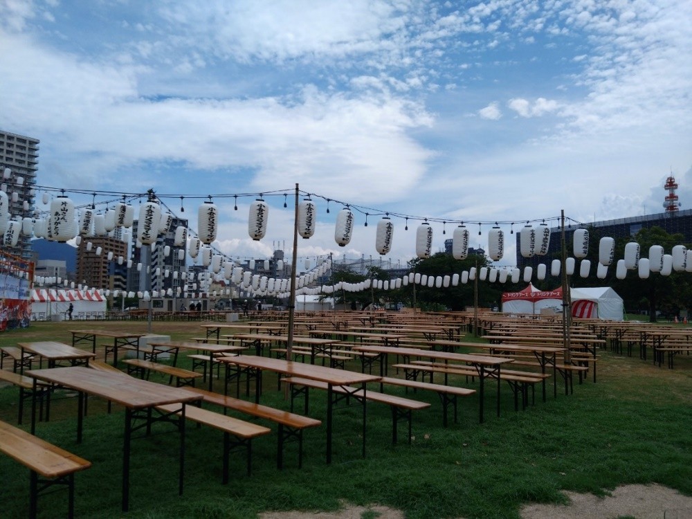会場のいたる場面で、おもてなしの心も感じました。例えば、公園の大芝生広場にたくさん設置されたテーブルとベンチ。