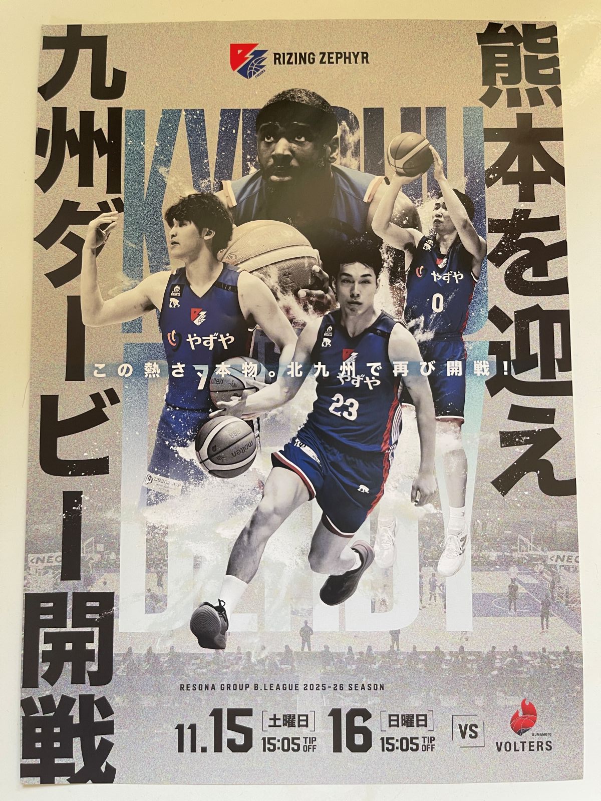 北九州市立総合体育館(北九州市八幡東区八王子町4-1)で11月15日と16日、Bリーグ「ライジングゼファーフクオカ VS 熊本ヴォルターズ戦」が開催されます。