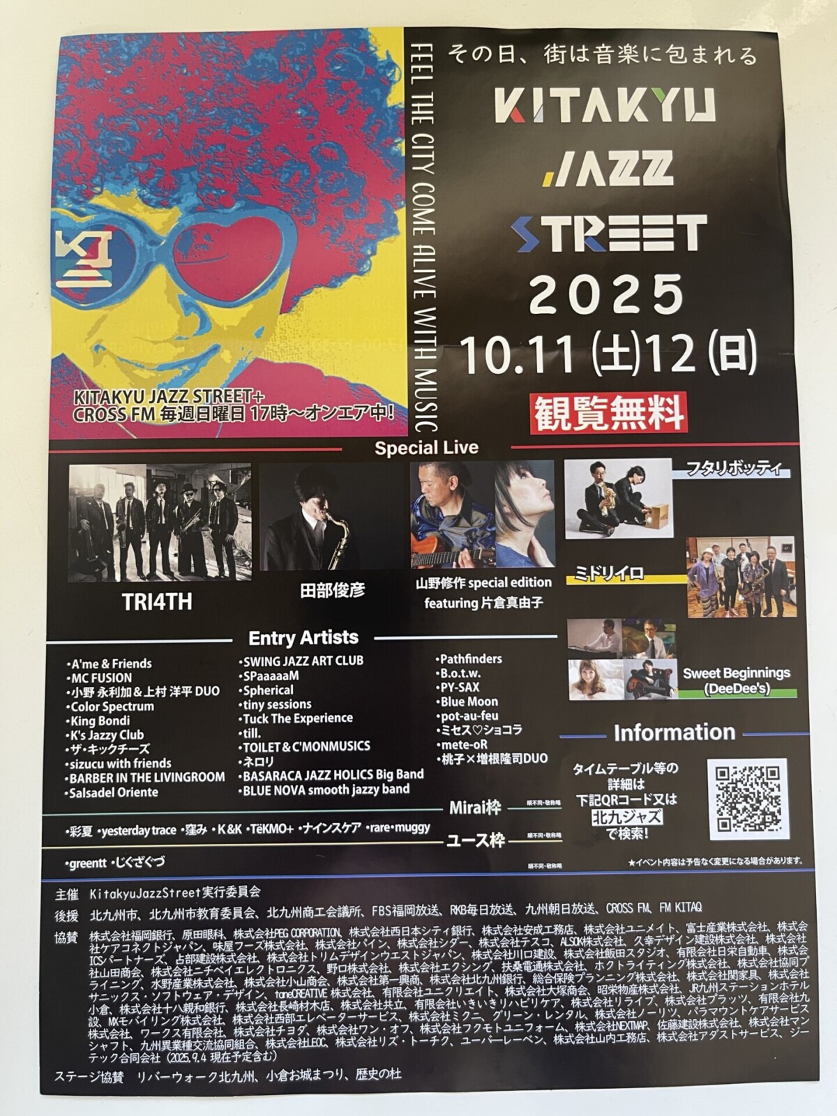 「KITAKYU JAZZ STREET 2025」は、リバーウォーク北九州のミスティックコート、小倉城のお城まつりステージ、歴史の杜ステージ、紫川親水広場で開催。