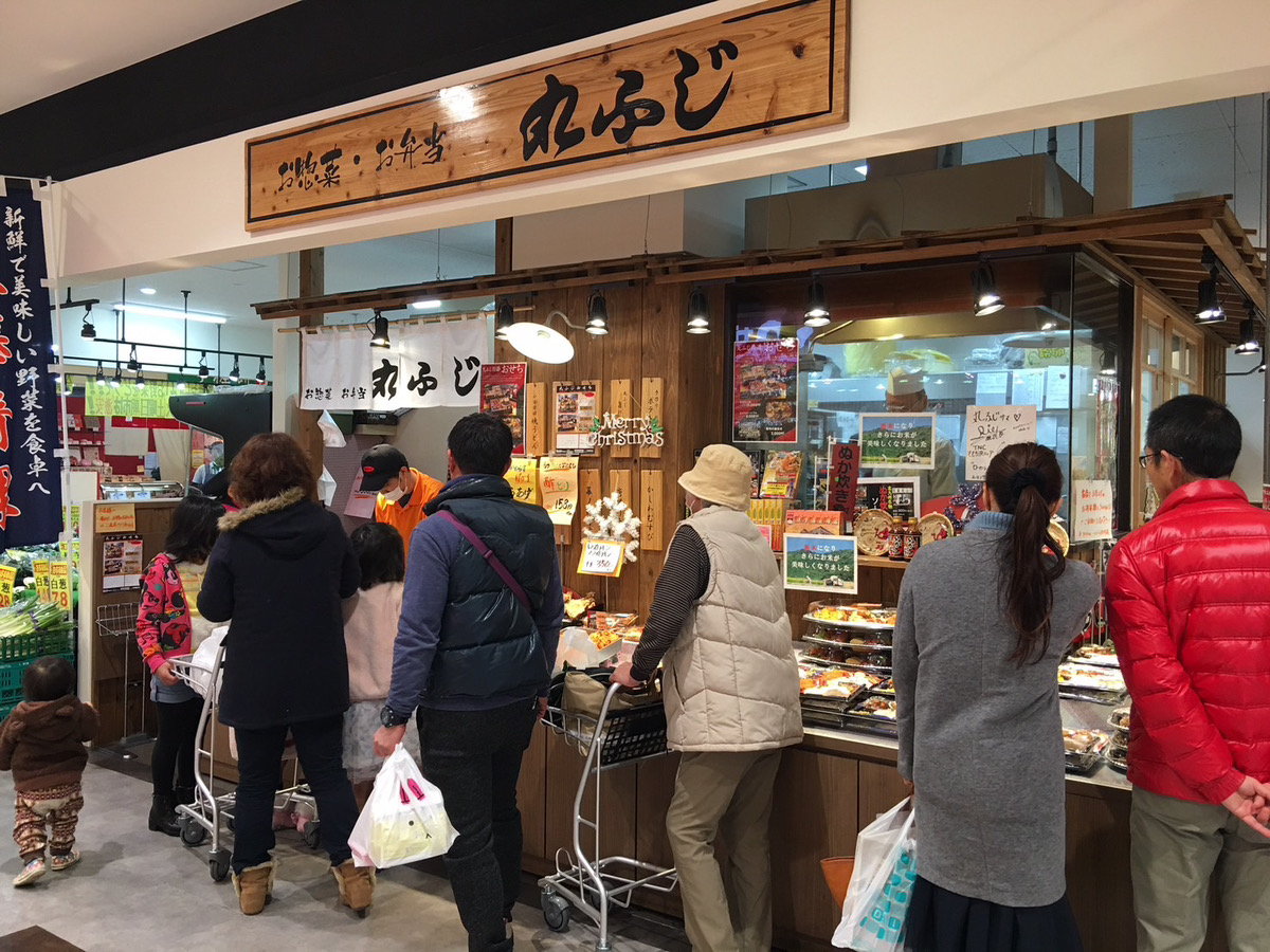 「丸ふじサニーサイドモール店」では、お昼時に日替わり弁当(500円/1日10食限定)に多くの人が列をつくるほどの人気ぶりです。