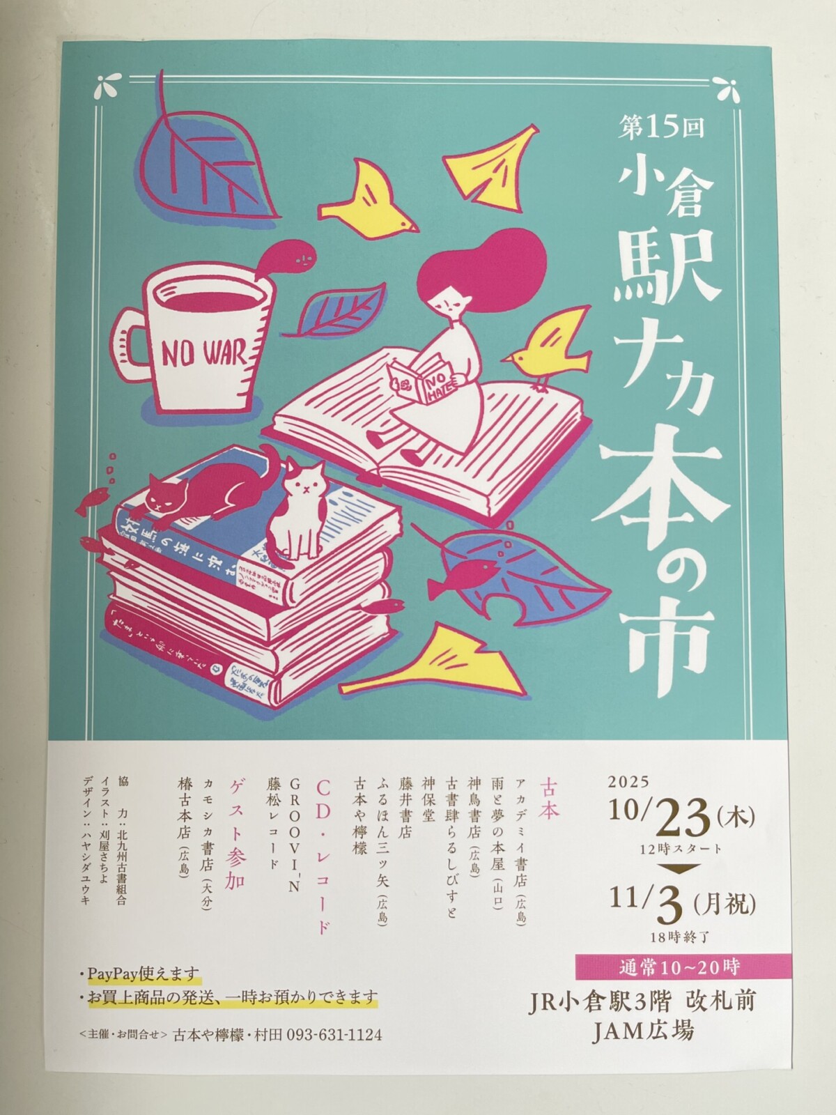小倉駅ビル内・JAM広場(JR小倉駅3階 改札前)で10月23日〜11月3日の期間、「第15回小倉駅ナカ本の市」が開催されます。