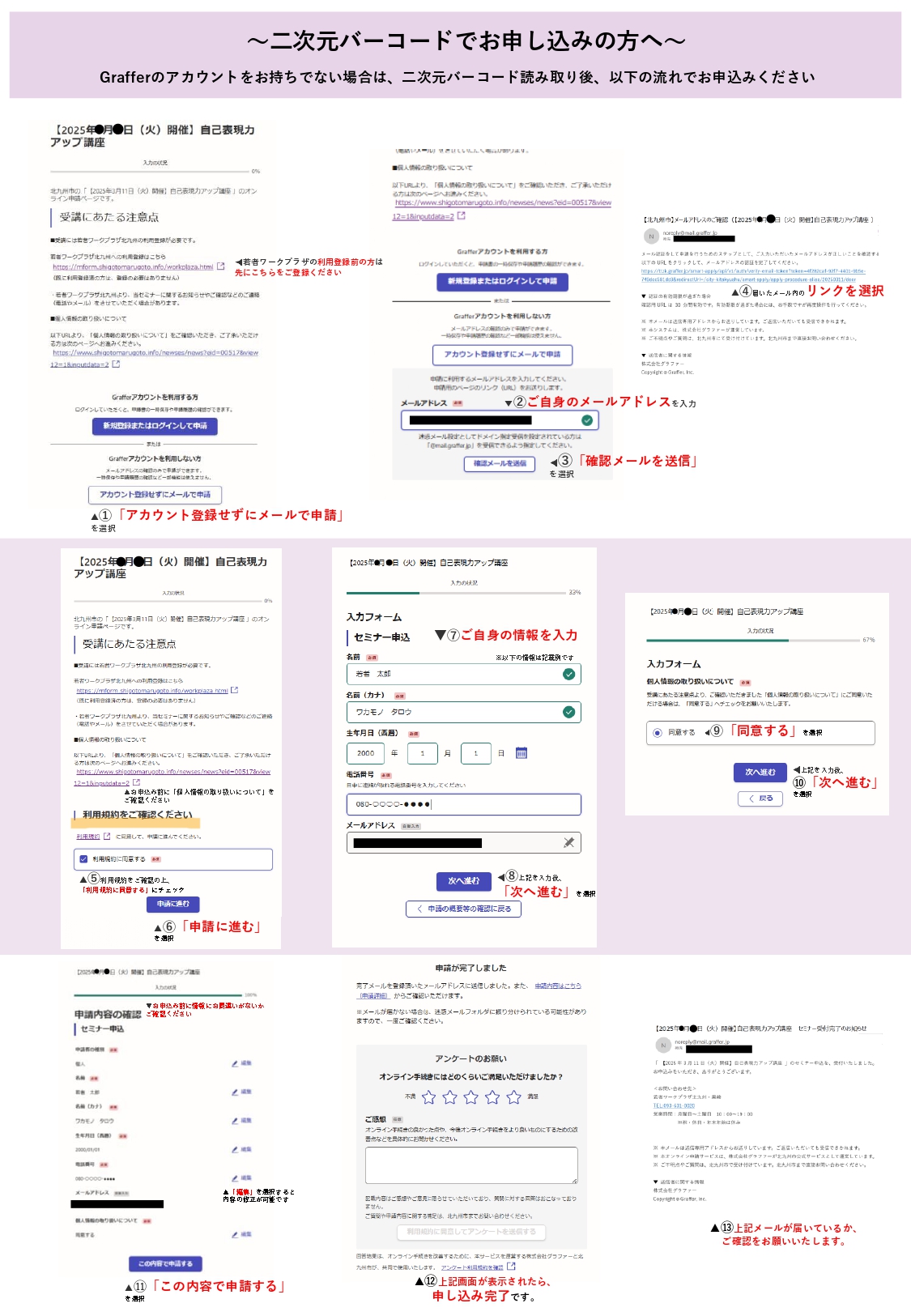 ※Grafferのアカウントをお持ちでない場合は、二次元バーコード読み取り後、チラシ記載の流れでお申し込みください。