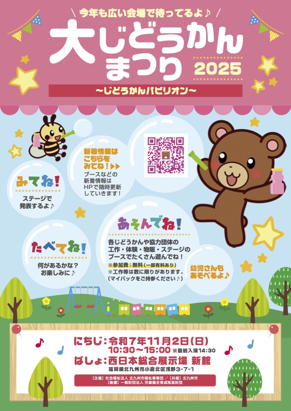 西日本総合展示場の新館(北九州市小倉北区浅野3-7-1)で11月2日、北九州市内すべての児童館が集結する「大じどうかんまつり2025」が開催されます。