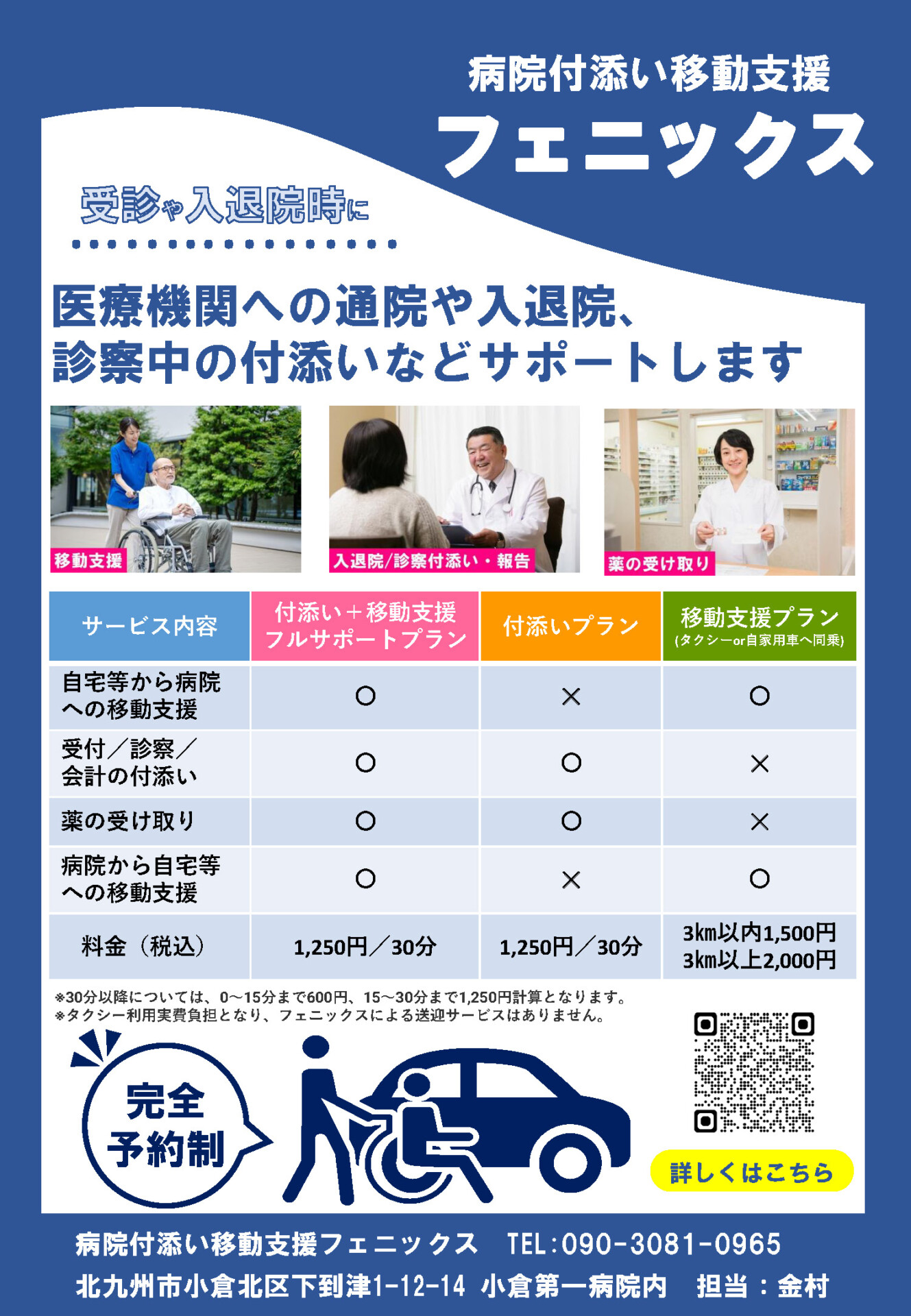 そんな通院時の困りごとを支えるのが、北九州市で活動する<病院付添い移動支援 フェニックス>です。フェニックスは、移動のサポートだけでなく、受付・診察の同席・会計・薬の受け取りまでを一貫して支援。