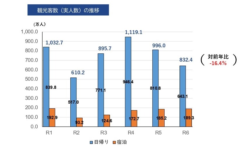 観光客数(実人数)は対前年比で減少 宿泊者数はコロナ前の水準に
