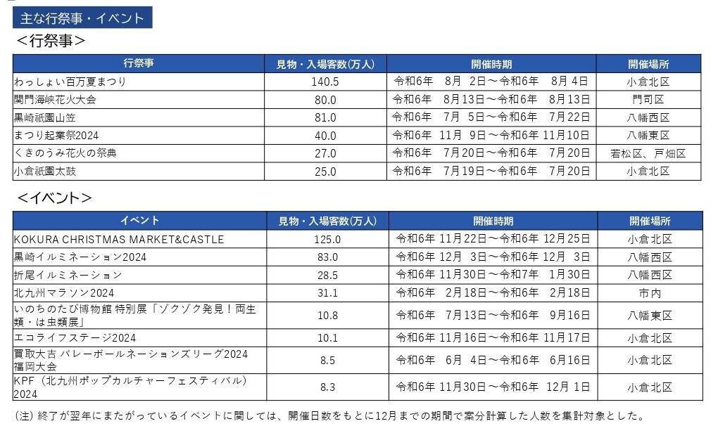 特に「KOKURA CHRISTMAS MARKET&CASTLE」や「バレーボールネーションズリーグ2024福岡大会」といった大規模イベント、国際試合等の開催が増加の要因として挙げられています。