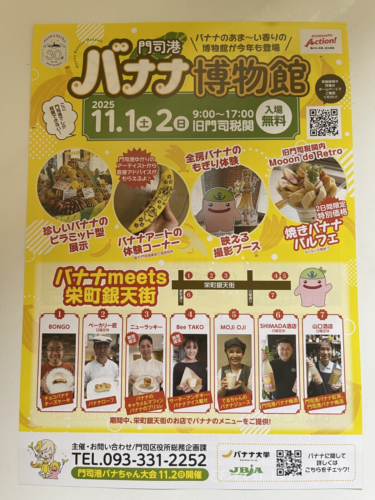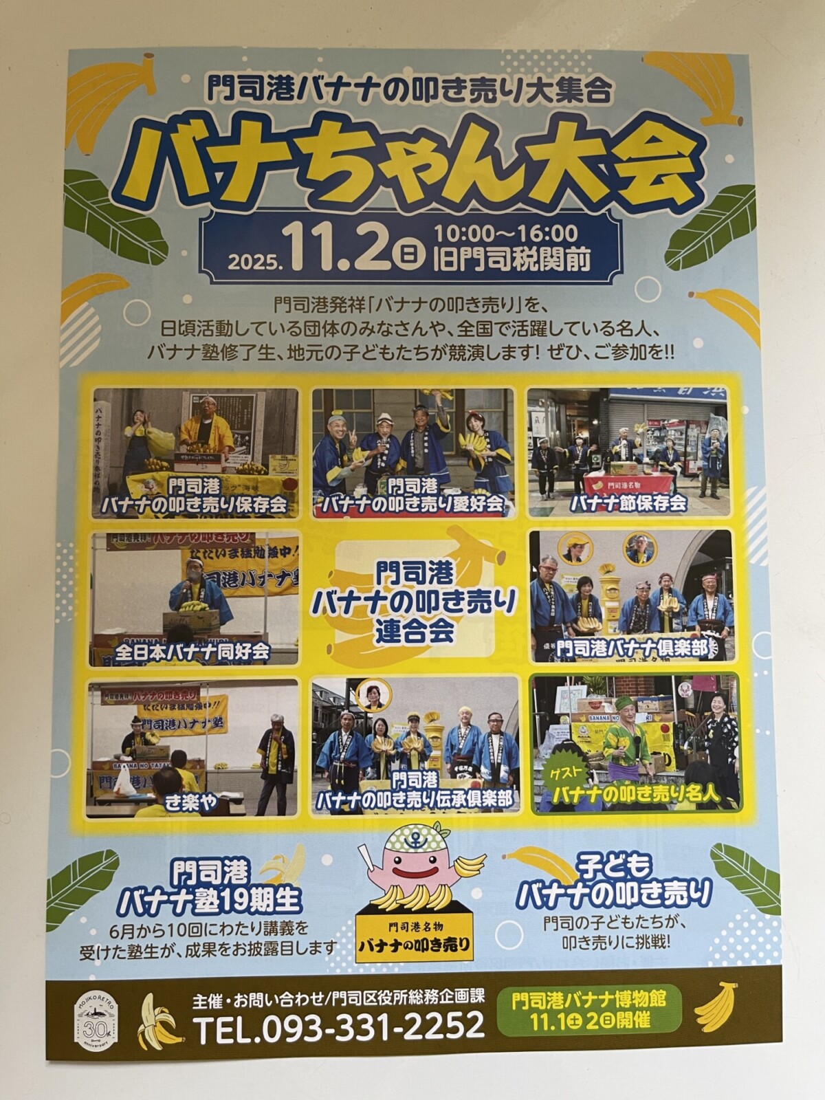 11月1日〜2日には、バナナの叩き売り発祥の地・門司港の恒例イベント「門司港バナナ博物館」が開催されます。