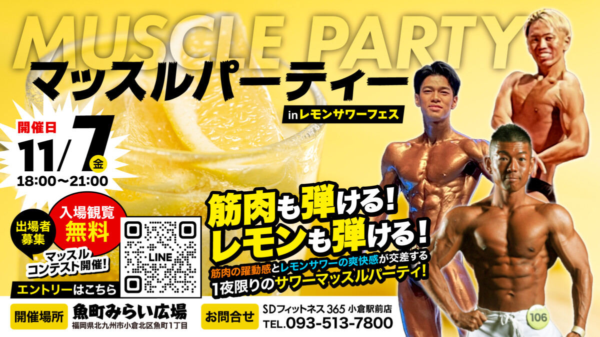 さらに7日は、筋肉美とパフォーマンスを融合したイベント「マッスルパーティー」を同時開催。来場者の投票で入賞者を決定するとのことで、観覧無料で、誰でも投票することができます。