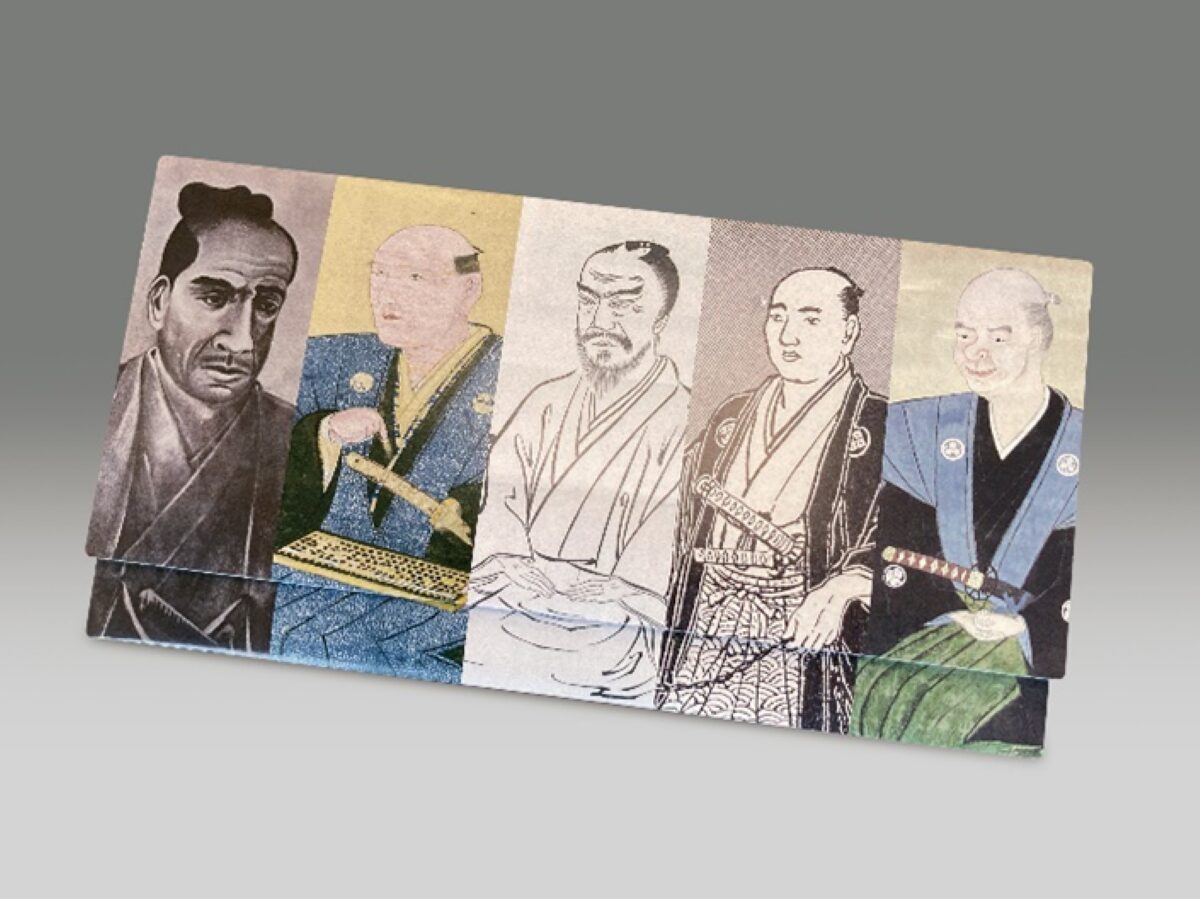 企画展の開催期間中、有料入館者全員に期間限定デザインのチケットホルダーが配布されます。企画展で紹介する5人の地図製作者と、その代表的な地図資料を横一列に並べたデザインとなっています。
