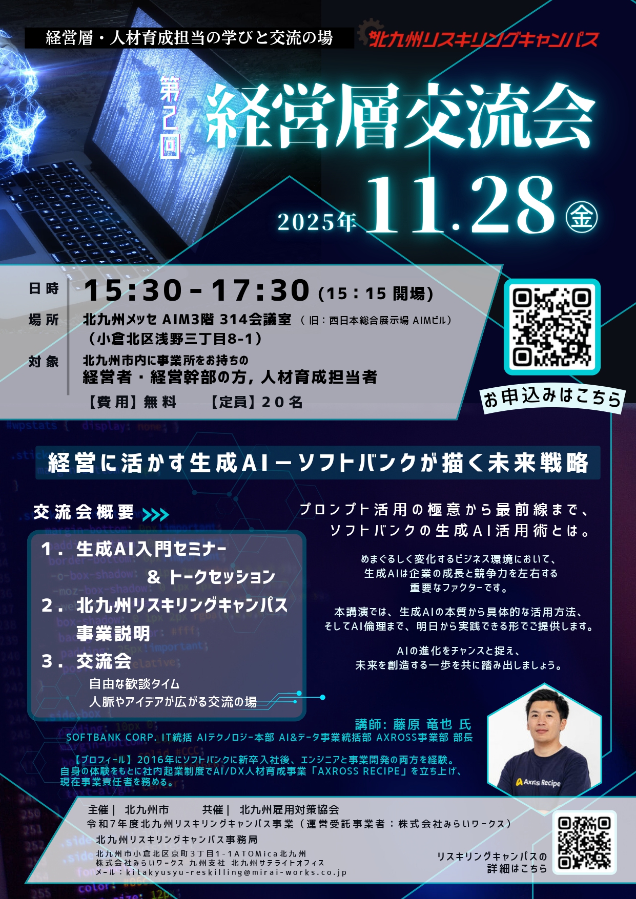 北九州リスキリングキャンパス「第2回経営層交流会」開催/北九州市 産業経済局 雇用・産業人材政策課