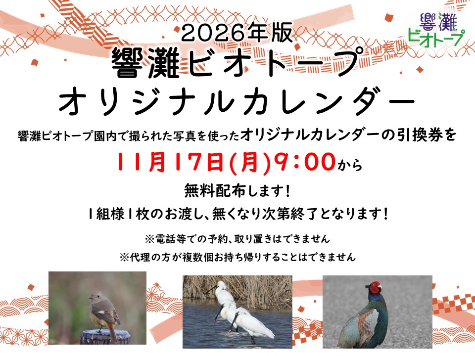 2026年響灘ビオトープオリジナルカレンダー引換券を配布します/響灘ビオトープ