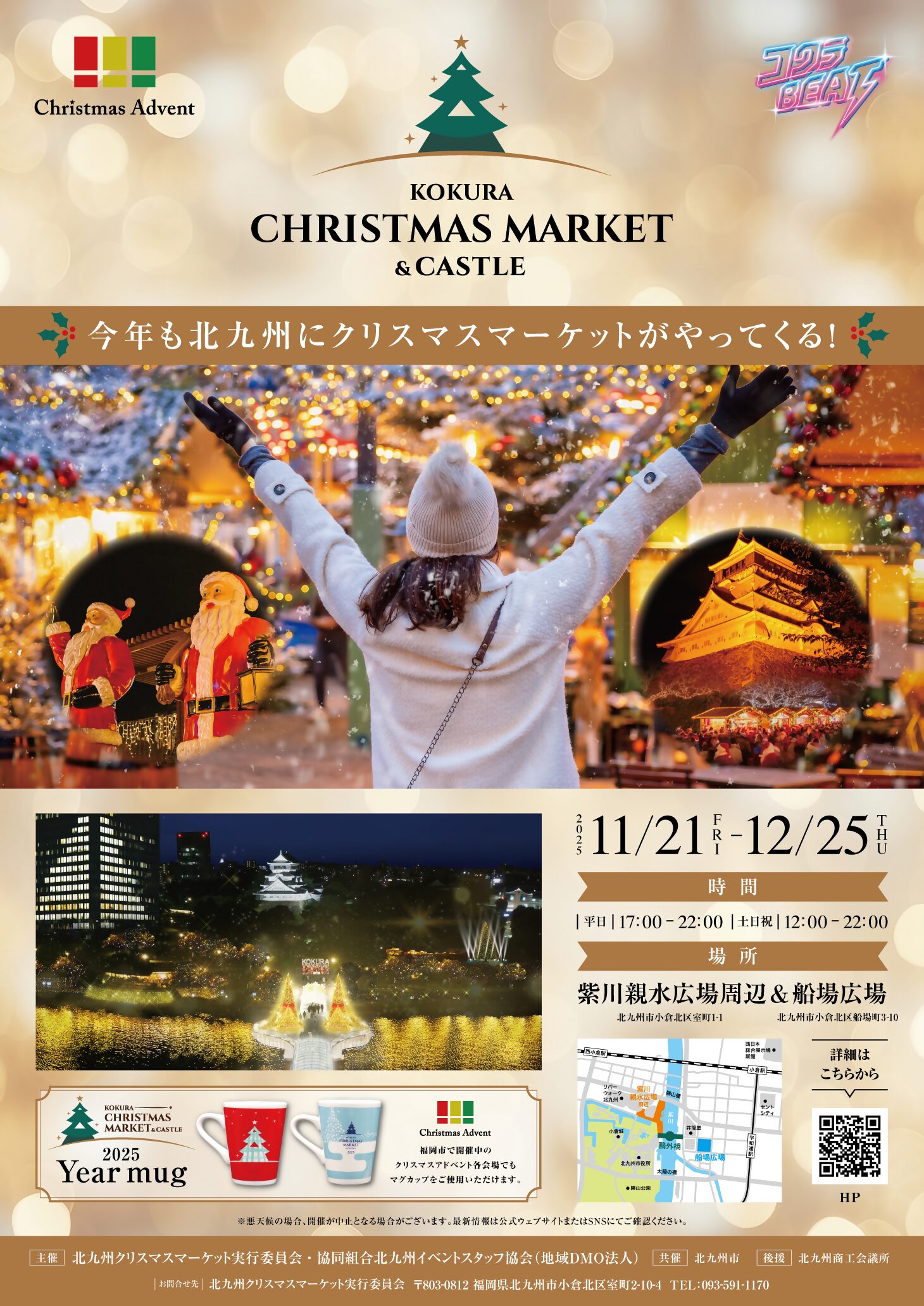 昨年、初開催で126万人を動員した「KOKURA CHRISTMAS MARKET & CASTLE」。今年は、さらにパワーアップして北九州の冬を彩る一大イベントになります!様々なまちの主役が参加し、地域と共に創るクリスマスマーケットで多くの方に”HAPPY”をお届けします。