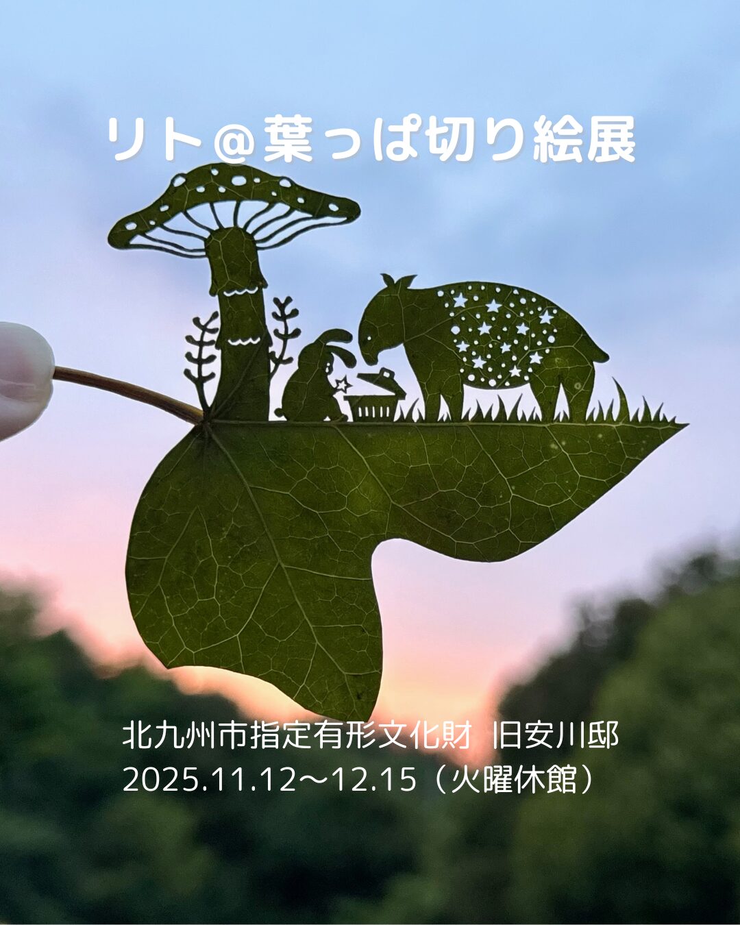 昨年、北九州初開催で多くの人を魅了した「リト展」が旧安川邸に帰ってきます。紅葉の季節、安川邸の庭園が色づきを増す季節に、リトさんが1枚の葉っぱに込めた優しい世界をゆっくりお楽しみください。