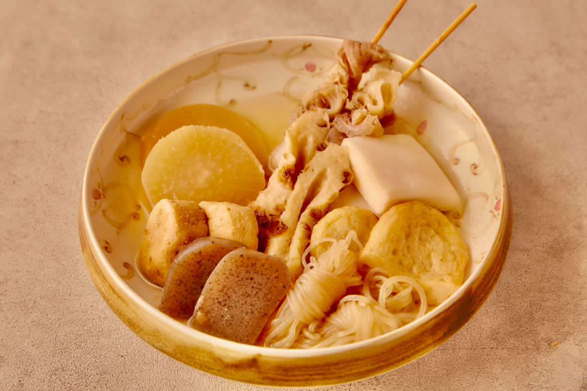 おでんは、食べ放題だからといって決して手を抜かず、鯛のアラをじっくり丁寧に炊き出した鯛だしで仕込んでいます。鯛の香ばしさと旨味、深み、そしてコクを存分に味わえる、こだわりのおでんです。