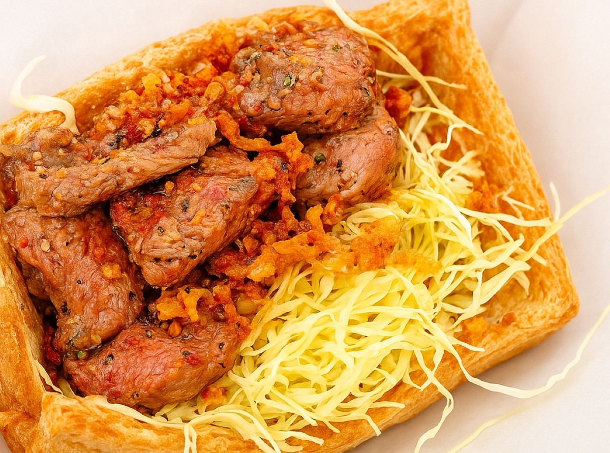 2024年「福岡肉-1グランプリ」優勝店。厳選牛肩ロースを使った大人気商品「特選牛ステーキサンド」(800円)などが提供されます。