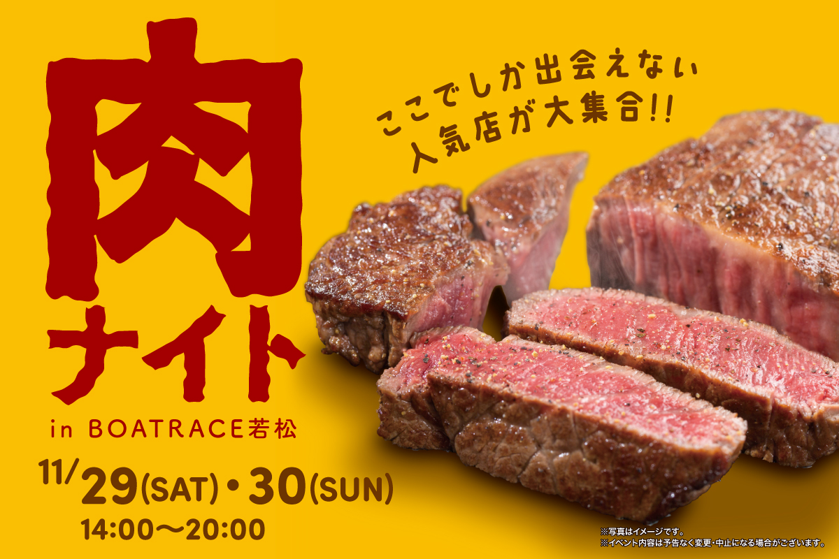 北九州のボートレース若松(北九州市若松区赤岩町13-1)で11月29日と30日の2日間、ここでしか出会えない人気店が大集合する「肉ナイト in BOATRACE若松」が開催されます。