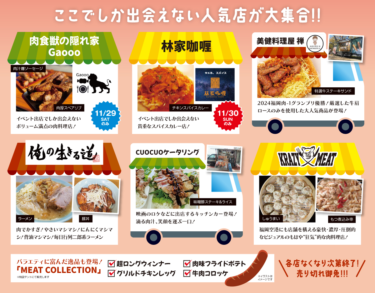 さらに、超ロングウィンナー・グリルドチキンレッグ・肉味フライドポテト・牛肉コロッケなど、肉好きにはたまらないバライティに富んだ逸品も特設テントで販売されます。