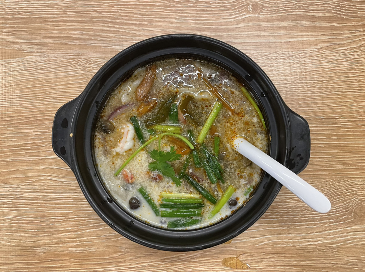 注文の際に辛さの調節ができるうえ、客が自らテーブルに備え付けの調味料を使って味付けを整えることができます。