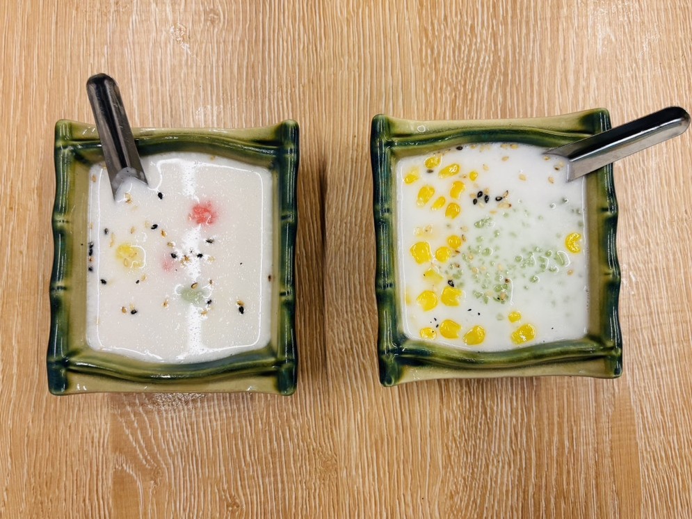 デザートのタピオカのココナッツミルク「サークカオポート」(450円)やタイ風お汁粉のココナッツミルク「ブアロイ」(470円)は温かくて甘すぎず優しい味わいです。