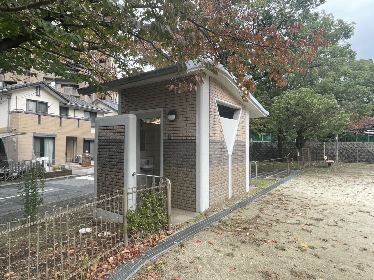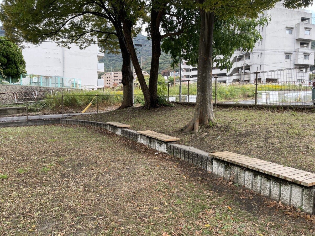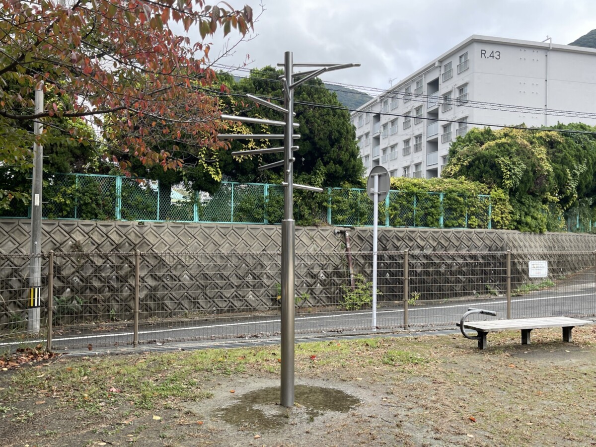 【上馬寄北公園】小さいながらも年代別に遊べる&銀色に輝くなぞのオブジェ(北九州市門司区)