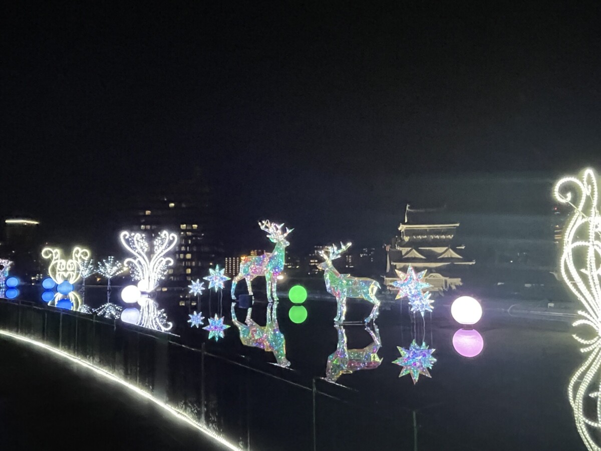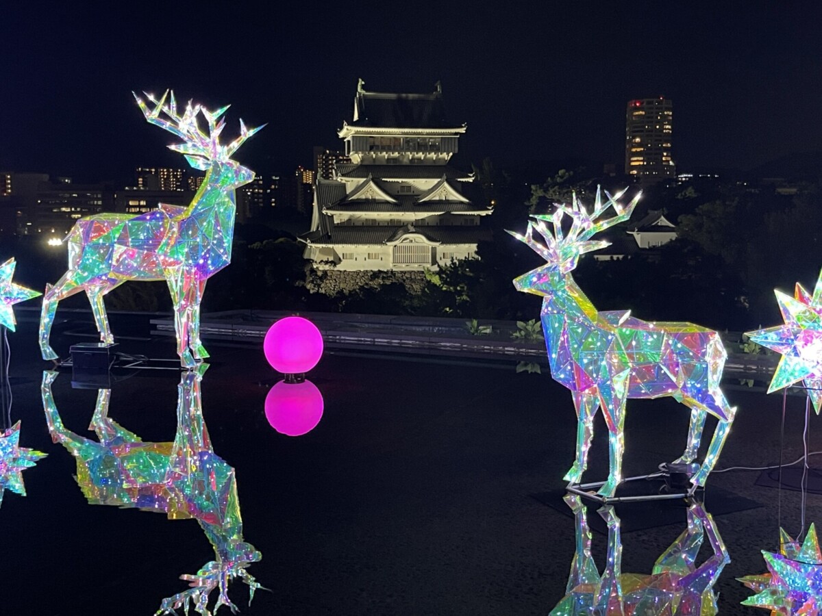 5階のルーフガーデンでは、「お城の見えるきらめきガーデン」と題し、小倉城とイルミネーションのコラボレーションを楽しめます。