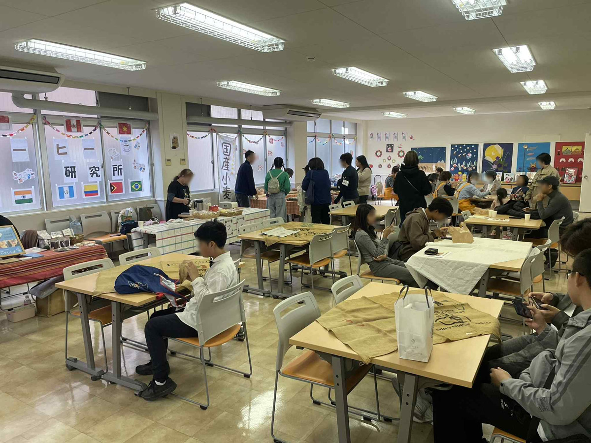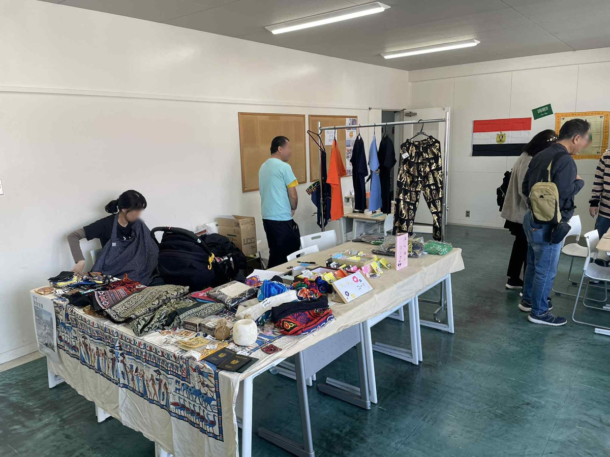 2階と3階の教室ではバザーや世界の小物販売、本の交換所、野菜販売、民族衣装体験といったブースもありました。