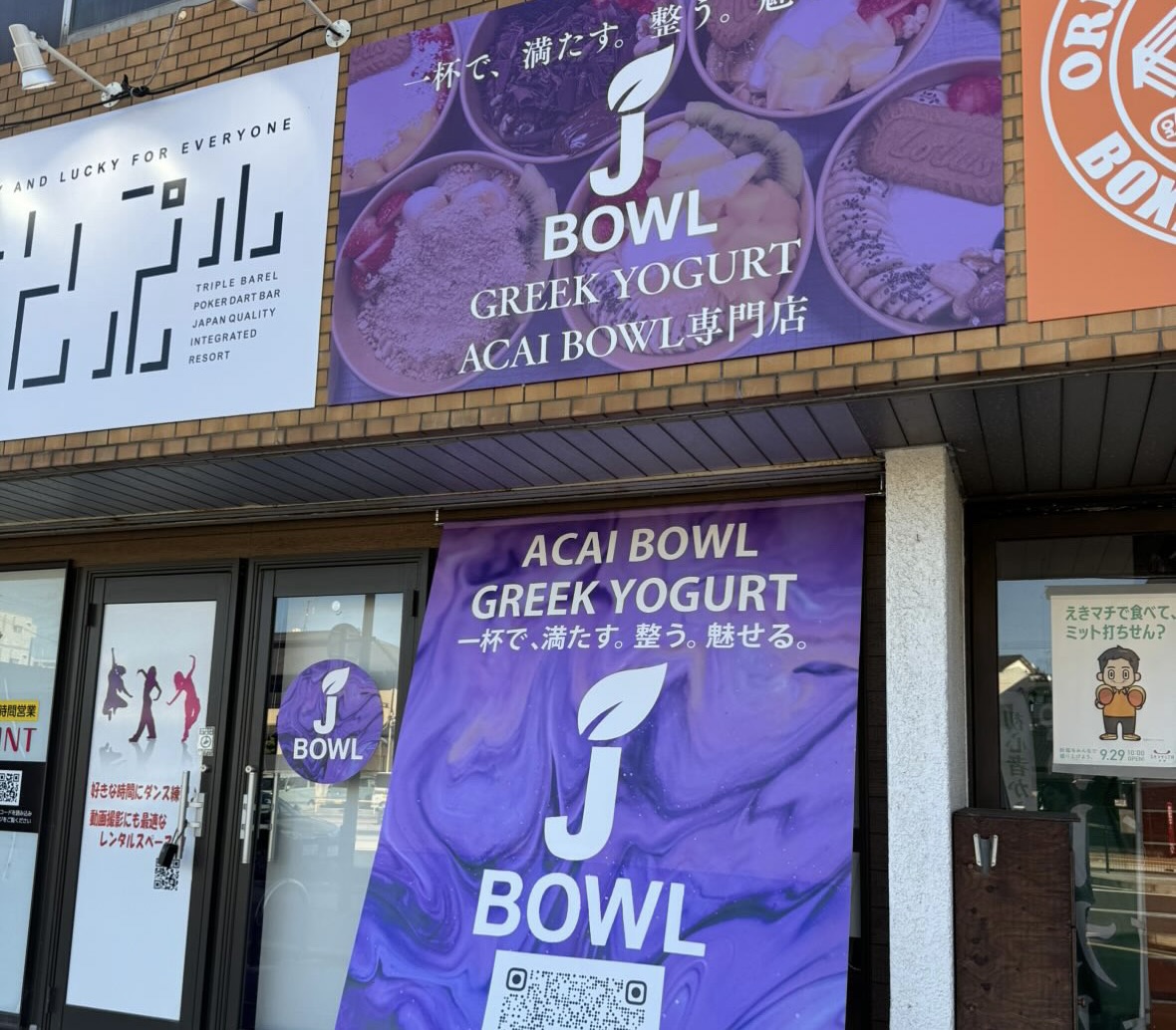 「JBOWL 折尾店」は、アサイーボウルグリークヨーグルトのお店。多彩なトッピングを楽しむことができ、自分だけのオリジナルアサイーボウルを注文できます。