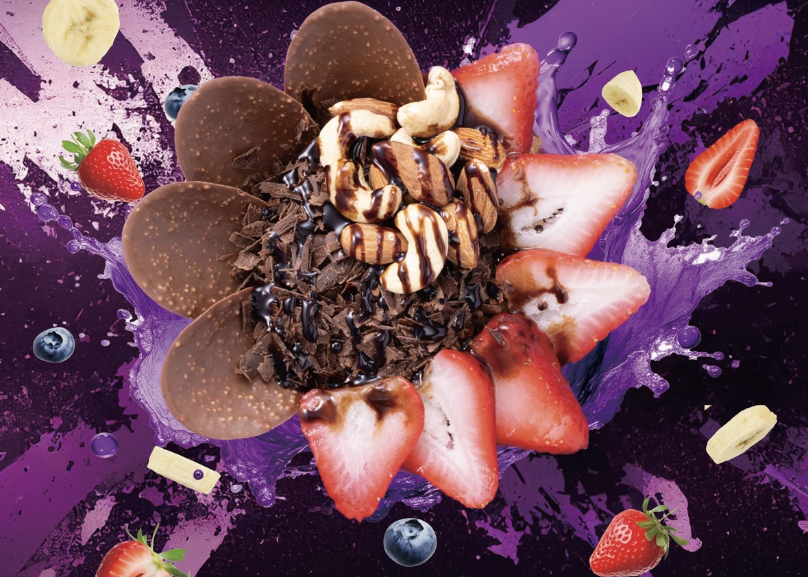 ストロベリーチョコスペシャルボウル」は、アサイーボウルの定番メニュー。チョコレートのトッピングがたっぷりとのせられた、チョコ好きにはたまらない一品です。