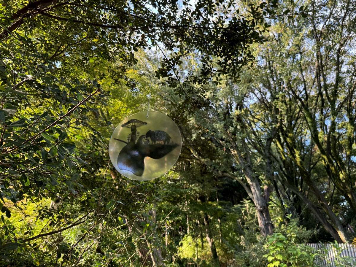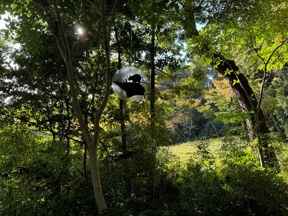 新緑の風の中、ゆらゆらと回る小さな作品を探しながら歩く時間は、まるで森の中の宝探しです。
