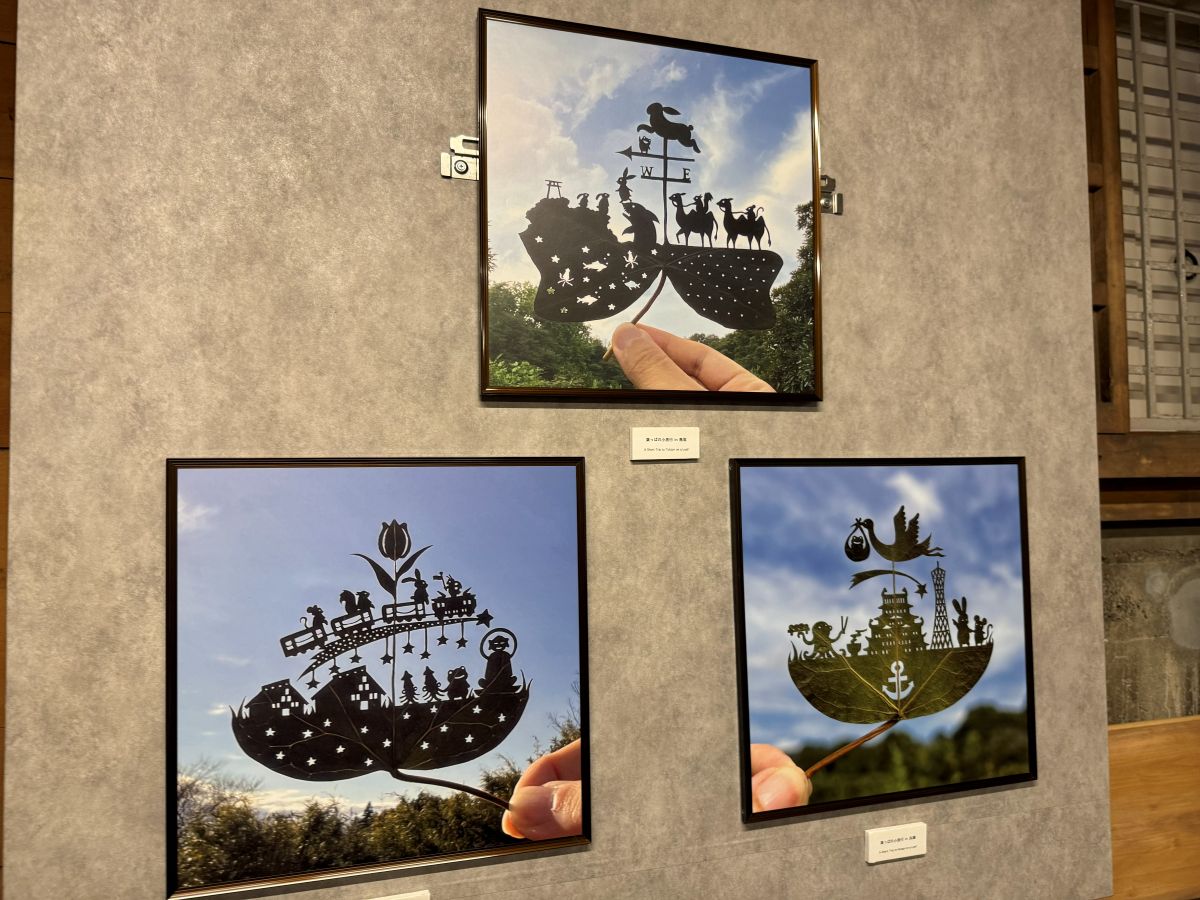 その後は、日本で2番目に古い鉄筋コンクリート建築という南蔵へ。ここには、福岡県をテーマにした作品など、<旅する葉っぱシリーズ>の切り絵が展示されています。
