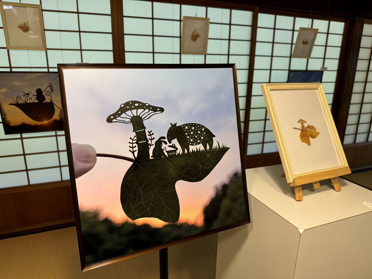 旧安川邸という歴史的建造物と、リトさんの葉っぱ切り絵が重なり合う興味深い展示会でした。