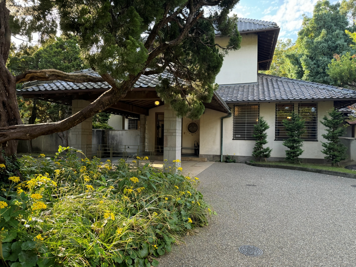 受付棟を通り抜けると、和と洋が調和した建築様式の建物が目の前に。今回の展示はこの邸宅が会場ということで、期待が膨らみます。