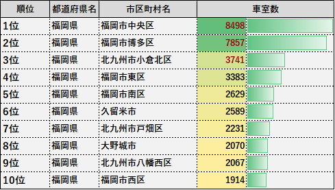 パーキングサイエンス株式会社は昨年、駐車場検索アプリ「P-Collection」に登録されている駐車場データをもとに、福岡県内の市区町村別にコインパーキングの車室数を調査、発表しました。