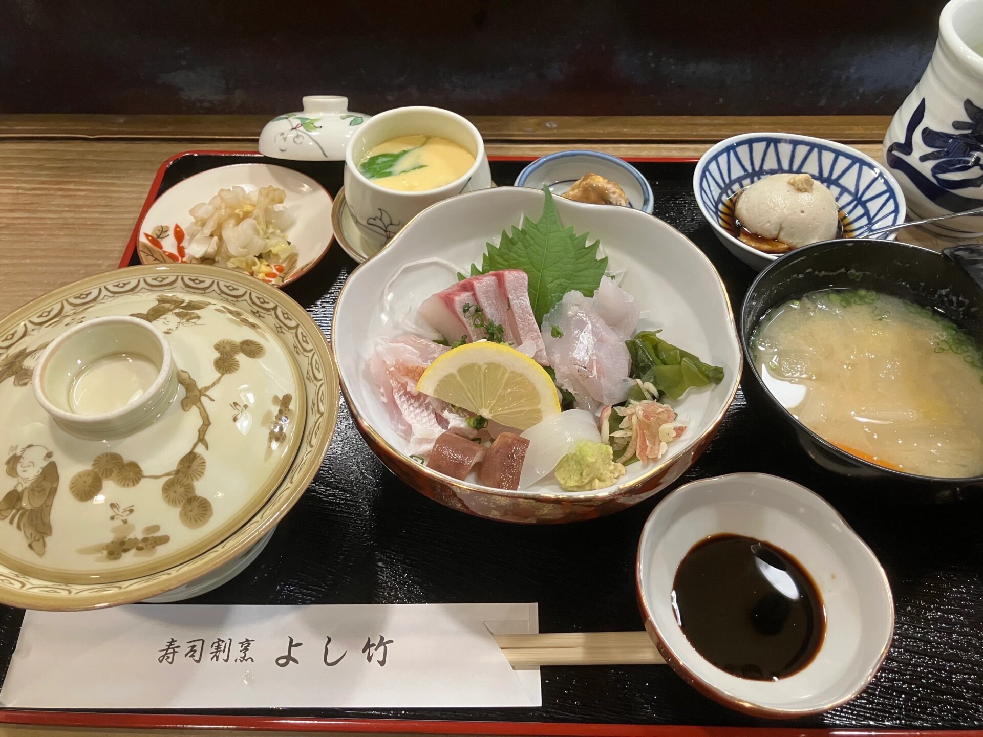 筆者は悩んだ末に両方が食べられる「吉御前」を、知人らは「お刺身御前」と「握り寿司定食」をそれぞれ注文しました。
