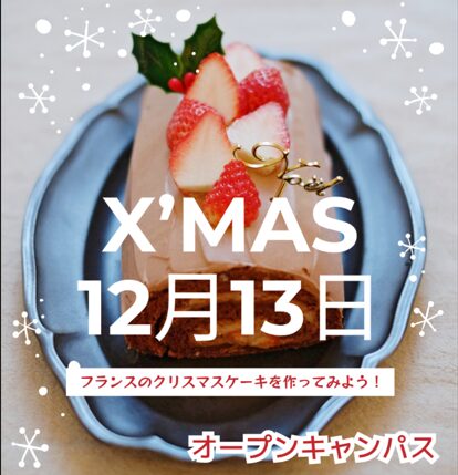毎年大人気! 調理師学校の体験型オープンキャンパスは、プロから教わる「ブッシュ・ド・ノエル」です!もうすぐクリスマスなので、今年のケーキは自分で作ってみませんか?