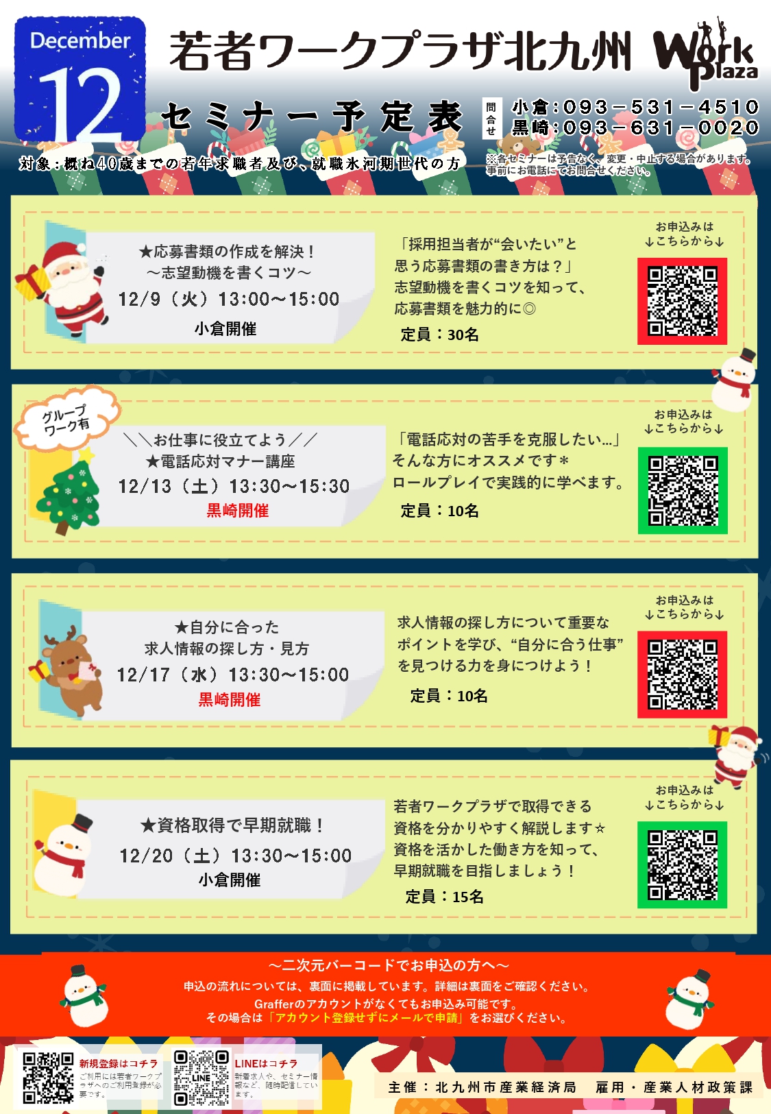 若者ワークプラザ北九州 12月のセミナー予定/北九州市 産業経済局 雇用・産業人材政策課
