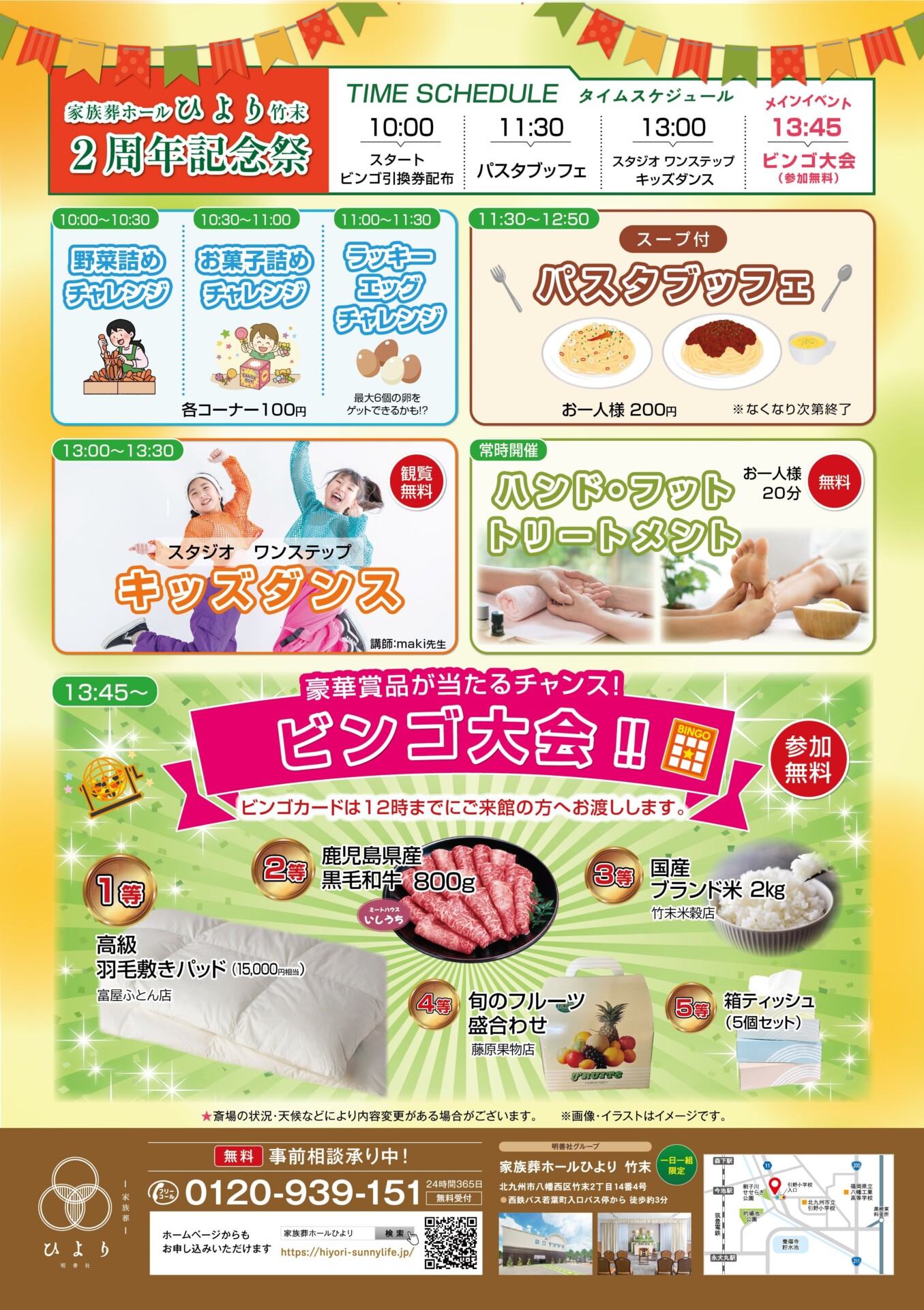 家族葬ホールひより 竹末「2周年記念祭」開催のお知らせ/株式会社サニーライフ