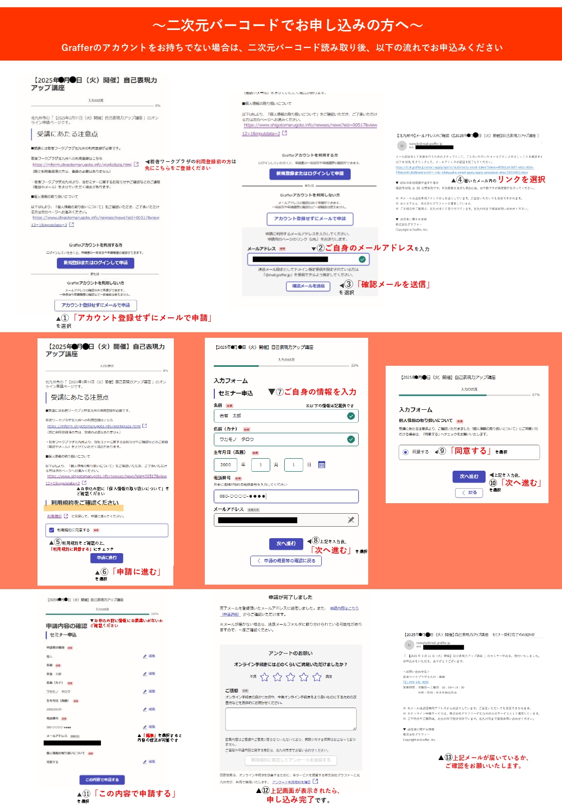 ※Grafferのアカウントをお持ちでない場合は、二次元バーコード読み取り後、チラシ記載の流れでお申し込みください。