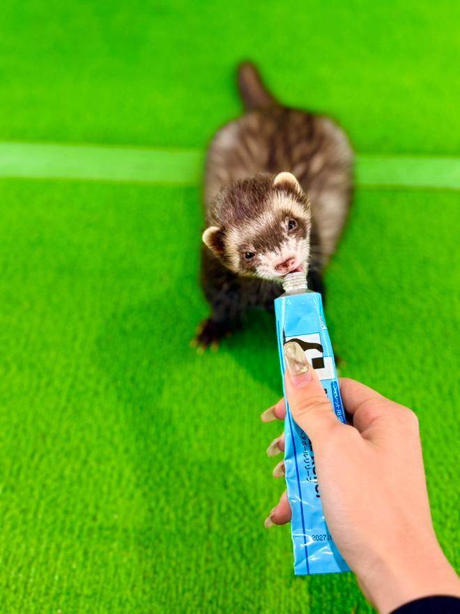 マーシャルフェレットのはなちゃんは、人懐っこくて甘えてくる姿がとてもかわいいですよ!夜行性なので普段は寝ていますが、たまに起きているときに触れあう事ができます!ぜひ遊びに来てくださいね★