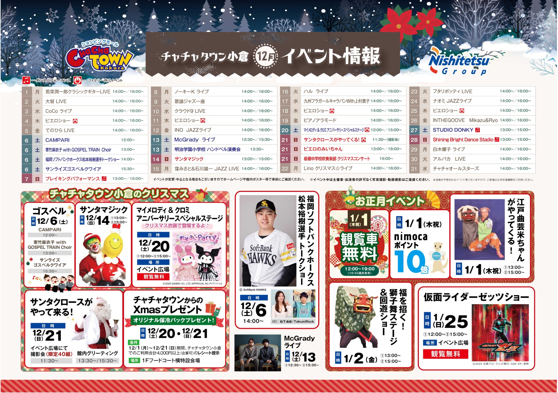 チャチャタウン小倉では、12月も様々なイベントをご用意しておりますので、ぜひお越しください。