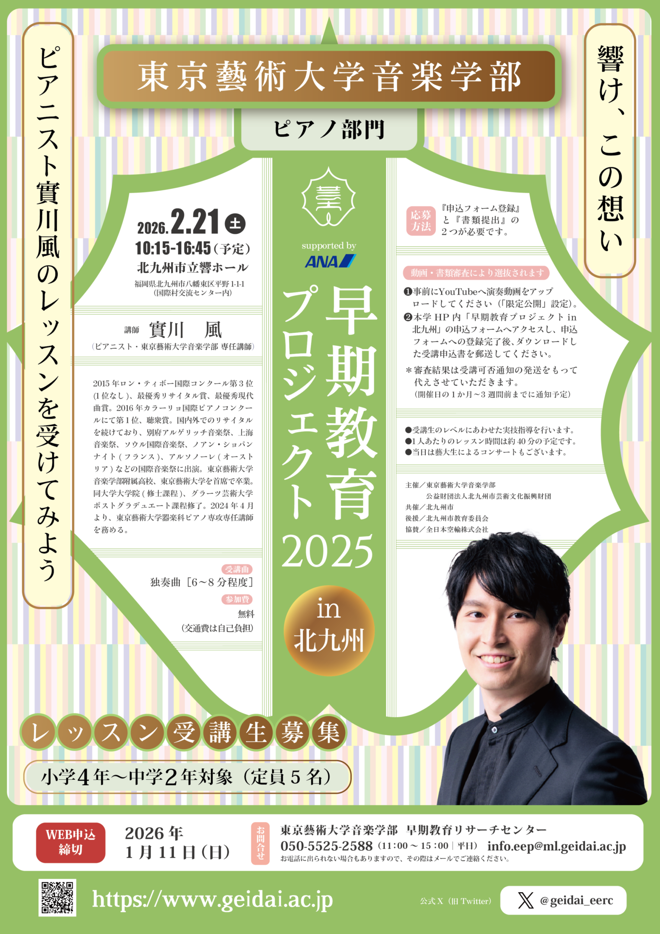 <受講生募集>早期教育プロジェクト2025 in 北九州(ピアノ部門)/北九州市立響ホール
