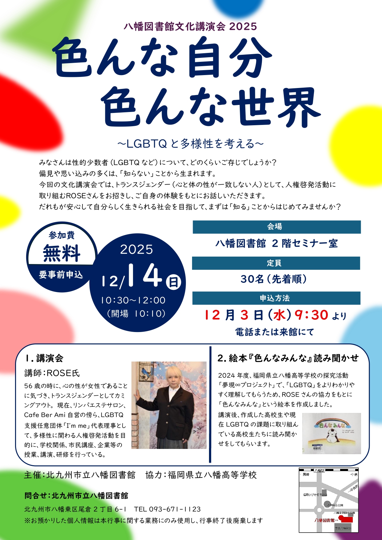 八幡図書館文化講演会2025「色んな自分 色んな世界」~LGBTQと多様性を考える~/北九州市立八幡図書館