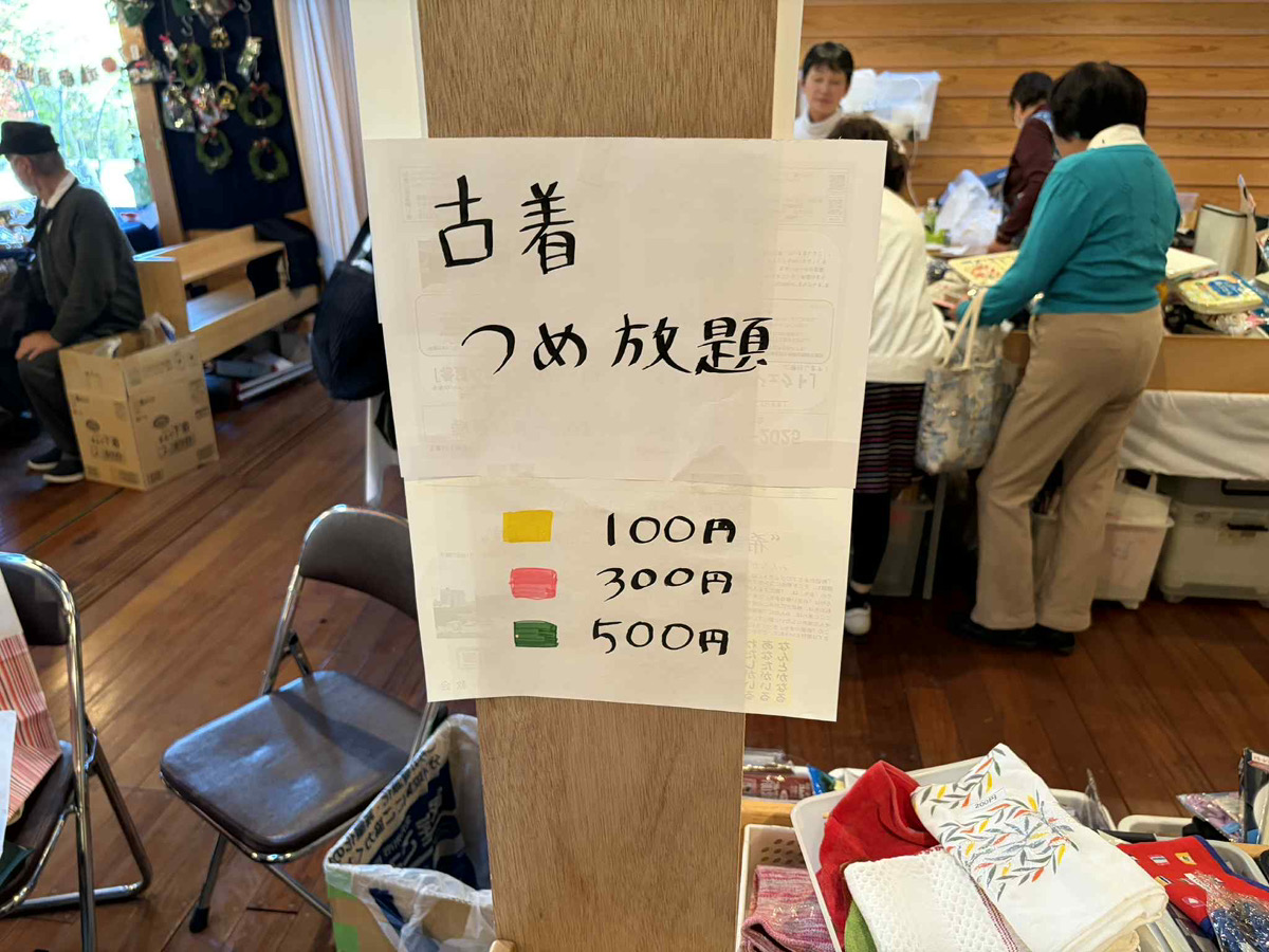 また、午前11時には値札の価格で販売されていた品々も、正午には古着が袋に詰め放題で100円~500円、午後2時頃には雑貨が半額。