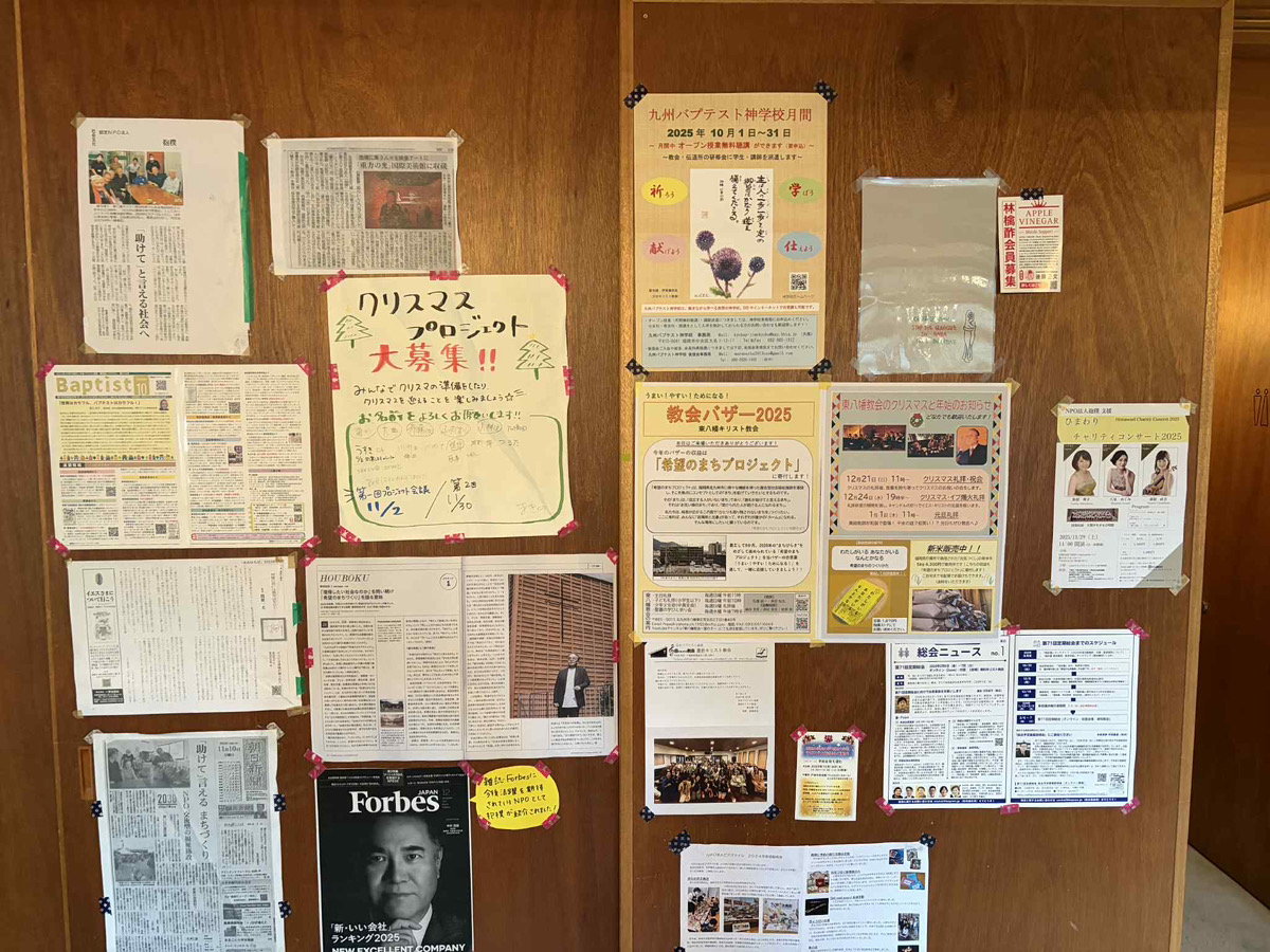 教会の会堂内では、<希望のまちプロジェクト>の案内をはじめ、協会の活動を知るさまざまな掲示物を見ることができます。