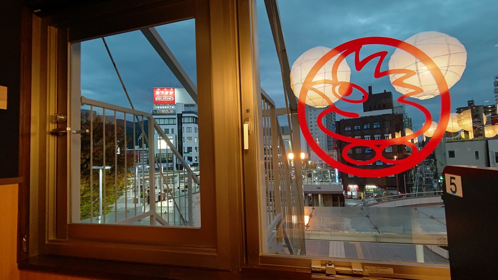 一部のテーブル席からは駅前の様子を見ることができます。筆者が案内されたのが、まさにその席でした。