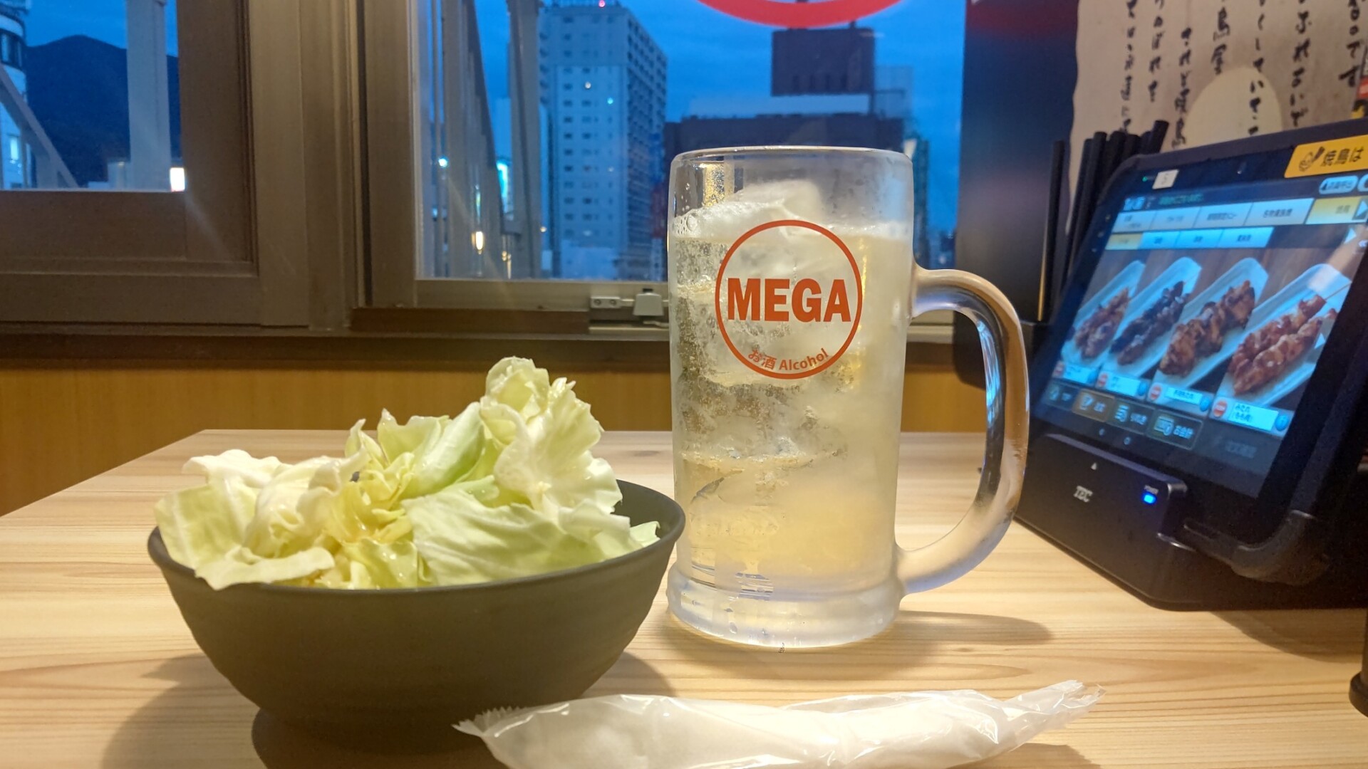 早速、「メガハイボールジムビーム)」を注文。メガサイズも他の商品と同じ均一価格390円(税込み)です。
