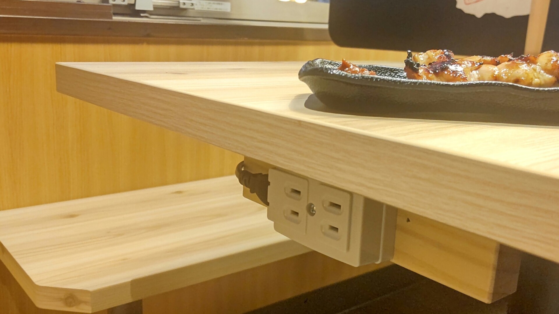 各席にはコンセントが備え付けられ、Wi-Fiや喫煙室も完備。スマホの充電やネット利用にも便利です。