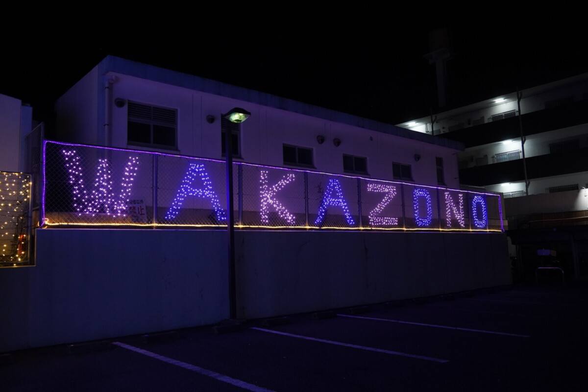 また、市民センターの奥には、ローマ字で「WAKAZONO」と書かれた電飾があり、地域のあたたかさを感じることができました。